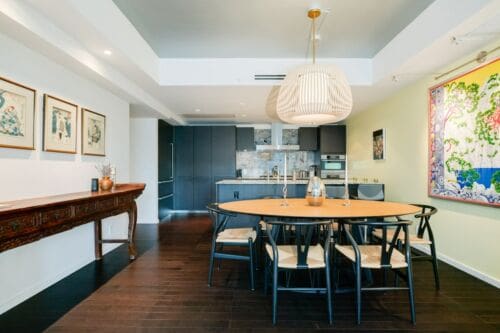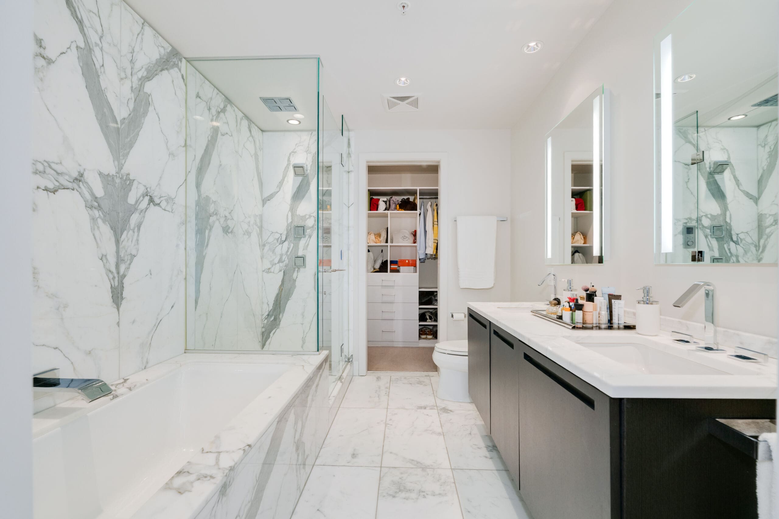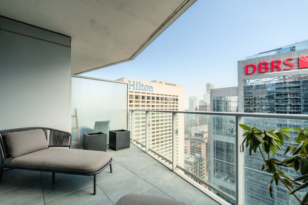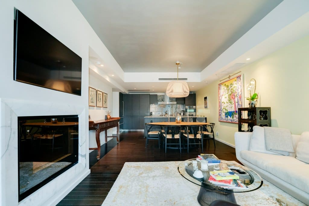 Welcome to the prestigious Shangri-La Residences Toronto, offering refined, hotel-inspired living in the heart of downtown Toronto. Suite 2908 features approximately 1,415 sq. ft. of beautifully proportioned living space, complete with a desirable east-facing balcony showcasing expansive city views and an abundance of natural morning light. Floor-to-ceiling windows enhance the open, airy feel, while the thoughtfully designed two-bedroom layout is ideal for both comfortable everyday living and elegant entertaining. The full-size Boffi kitchen overlooks the open-concept living and dining areas and offers abundant storage, a granite countertop with an eat-in area, and premium appliances, including a Miele dishwasher, hood fan, five-burner cooktop, wall oven, convection oven, and a Sub-Zero refrigerator with dual freezer drawers. A gas fireplace anchors the living space, while sliding doors provide seamless access to the balcony, finished with Sky Scapes raised porcelain paver floating flooring—creating a sophisticated outdoor extension. A well-appointed two-piece powder room is perfectly positioned for guests, offering both convenience and privacy from the bedroom areas. Both bedrooms are generously sized and thoughtfully designed, featuring custom California Closets built-ins as well as in the front hall closet and laundry room. The laundry area is equipped with a Bosch front-load washer and dryer. The primary suite includes a walk-in closet and a spa-inspired five-piece ensuite, while the second bedroom enjoys its own private three-piece ensuite. Kohler faucets and fixtures are featured throughout, complemented by pot lights and dimmers in the living room, hallway, and both bedrooms for a polished, cohesive finish. One underground parking space offers added convenience with easy access. Residents enjoy exceptional five-star amenities and services, including 24-hour concierge and security, valet service (eight times per month), access to Miraj Hammam Spa, a state-of-the-art fitness centre, yoga and boxing studios, a 20-metre indoor lap pool, hot tub, infrared sauna, and steam rooms. Ideally situated between Toronto’s Financial and Entertainment Districts, this residence offers elevated urban living at one of the city’s most iconic addresses.